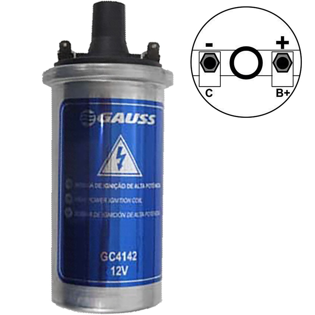 Bobina de Ignição Alfa Romeo 2300 & Fiat 147 – Elba – Fiorino – Panorama – Premio – Spazio – Uno & Ford Belina – Corcel – Del Rey – Marerick & Puma GTE – GTS & VW Brasília – Fusca – Karmann Ghia – Kombi – Passat – Variant – Voyage | Gauss
