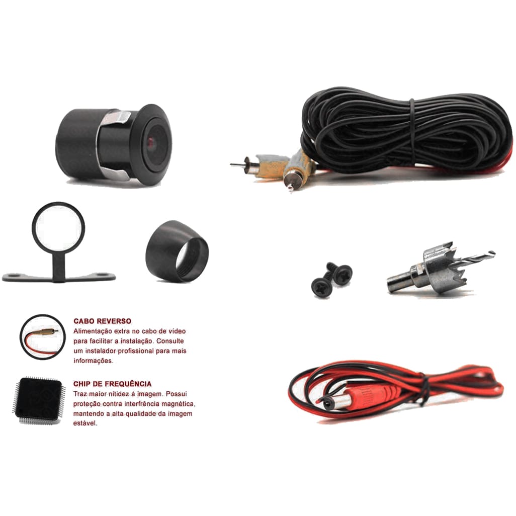 Marcadores de distância fixos. Alimentação extra no cabo de vídeo para facilitar a instalação