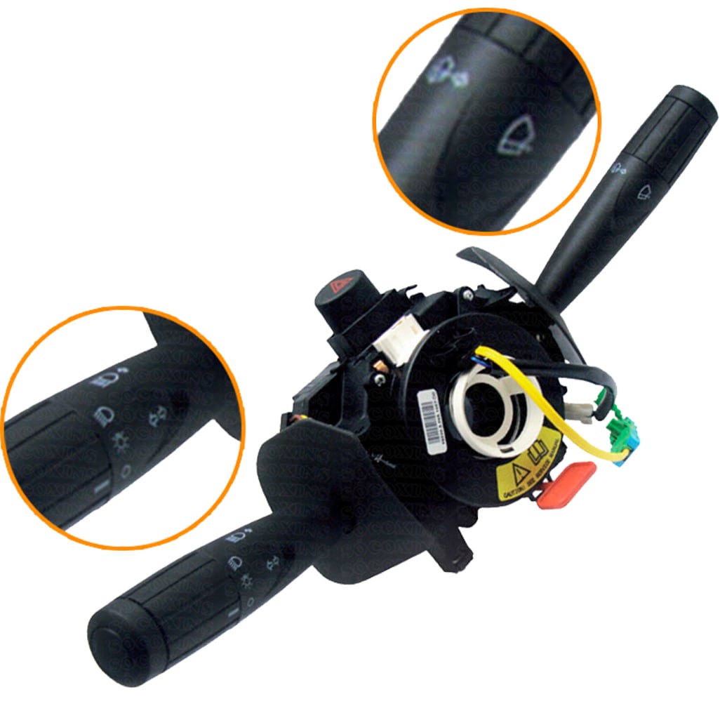OEM: 100190781; Especificações: com limpador dianteiro | sem limpador traseiro | sem função trip (computador de bordo) | com clock spring (cinta do airbag) | com interruptor de emergência preto