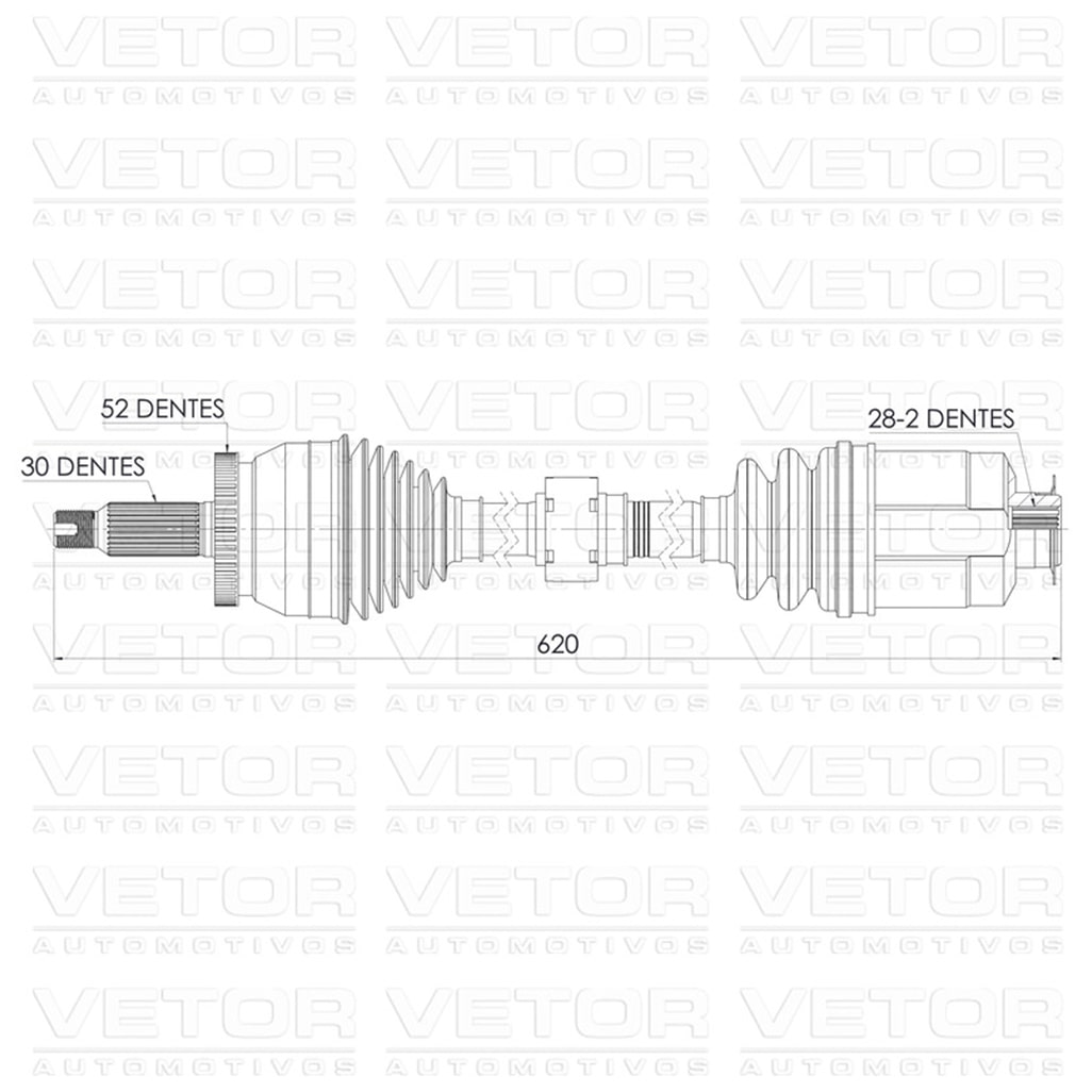 Especificação: Lado Direito | 30 Dentes homocinética | 28-2 Dentes tulipa | 52 Dentes ABS